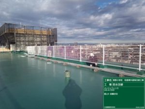 外壁下地検査の様子です。屋上フェンス取付と南面外壁塗装を行いました。