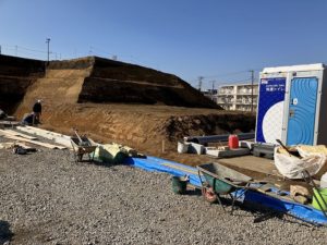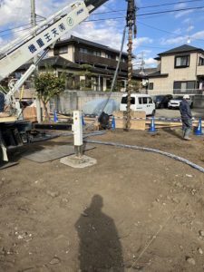 RC造3階建の新築工事が始まりました。杭打ち作業中です。