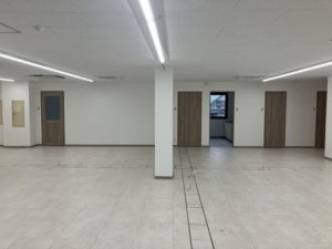 屋上では既存防水撤去〜仮防水。外壁部分では外壁調査の集計、庇部、軒天の撤去が完了し軽量鉄骨天井下地等を行なっています。